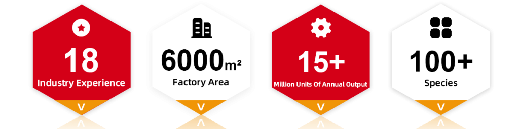20+ years of industry experience, 6000 m² factory area, 15+ million units of annual output, 100+ species.
