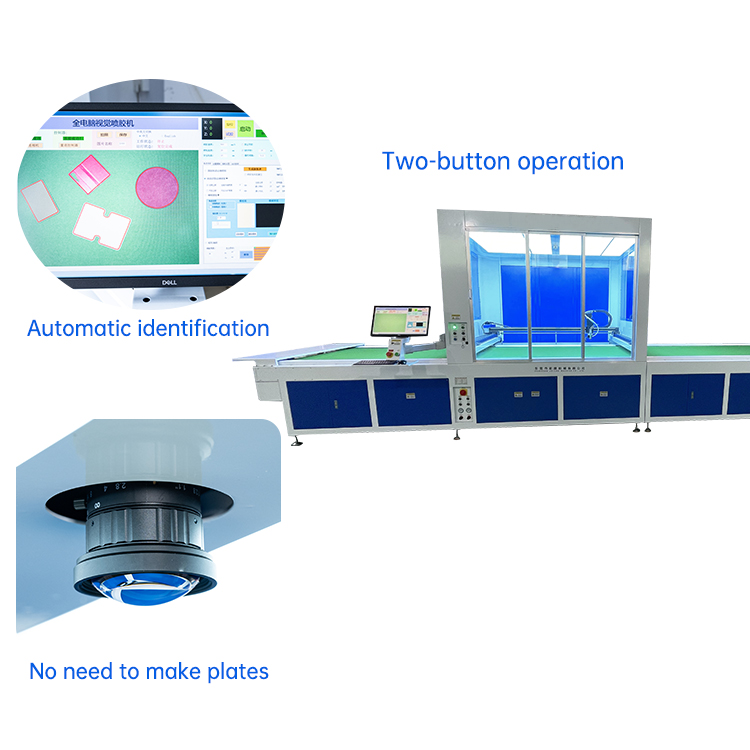 3. Automatic Identification: This machine uses a 30-megapixel camera that can capture and identify the material’s contour within 1 second and generate a glue spraying path.