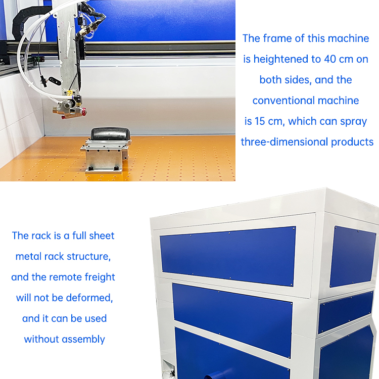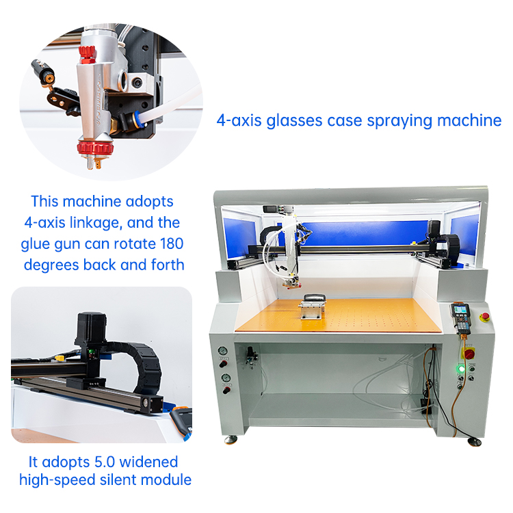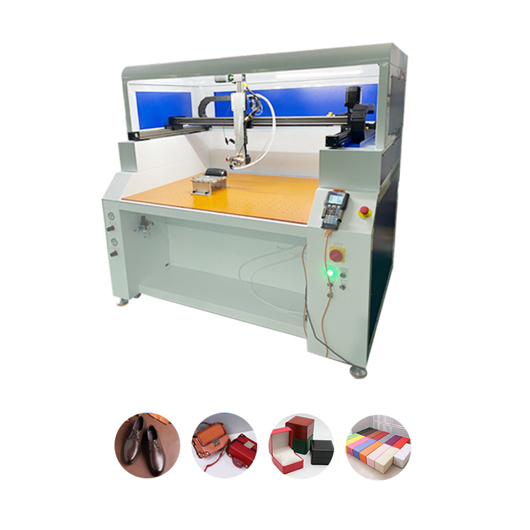 2. High speed. The bridge-type platform structure allows for simultaneous operation and material unloading, resulting in glue spraying speeds 5-6 times faster than manual operation.